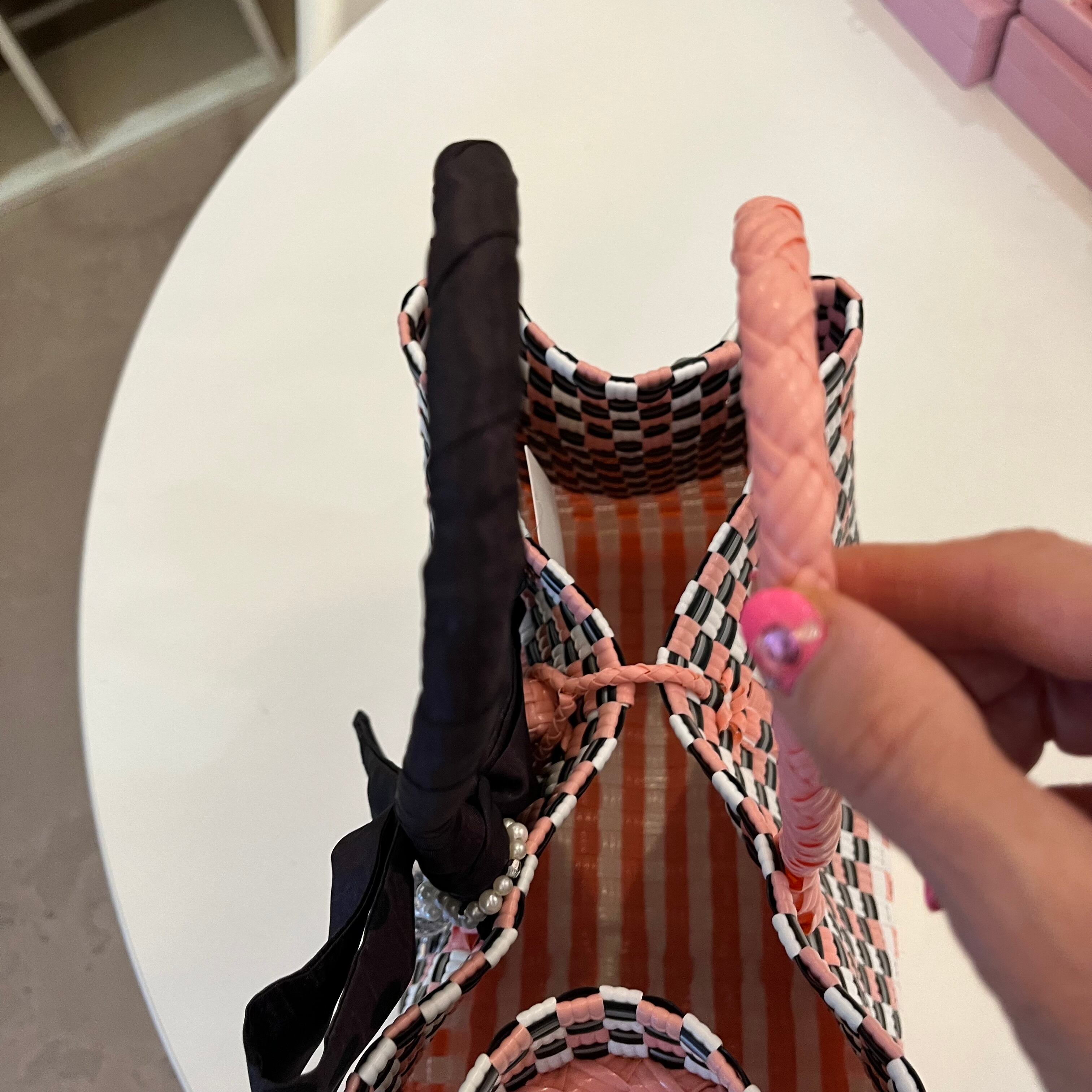 バリニーズバッグ.MSリボン.ベビーピンク×ホワイト×ブラック