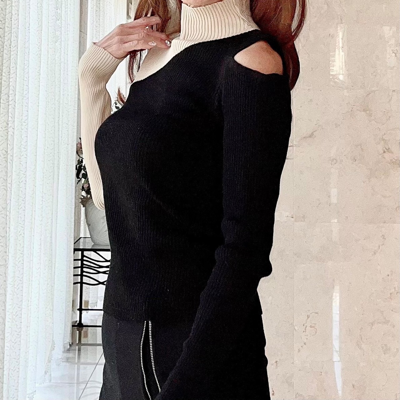 冬のコーディネートをぐっとおしゃれに仕上げるバイカラー肩出しニットが入荷しました!