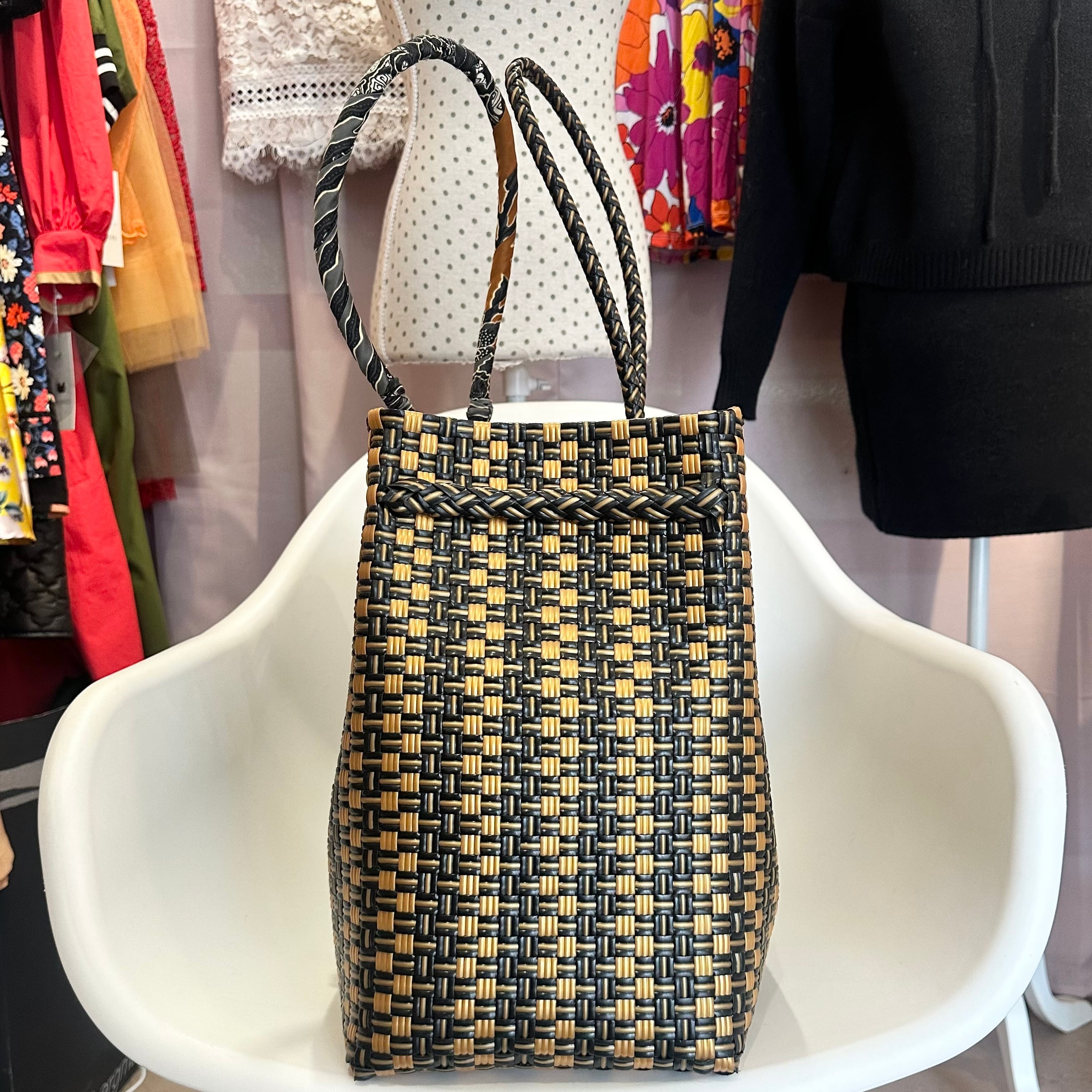 バリニーズバッグの中でも特に存在感のあるXXLサイズ、ゴールド×ブラックです。