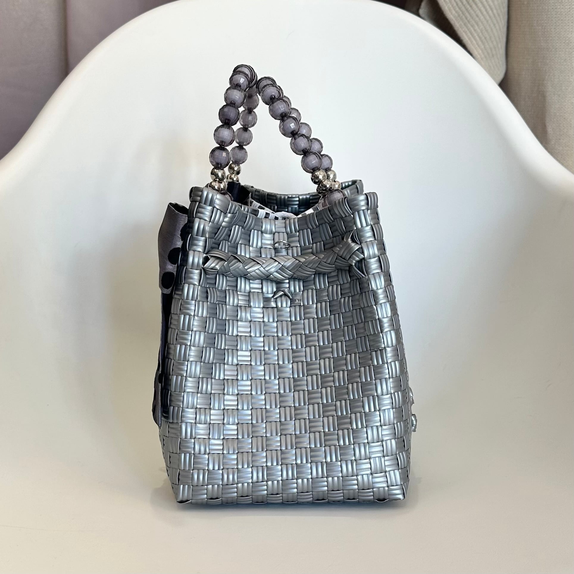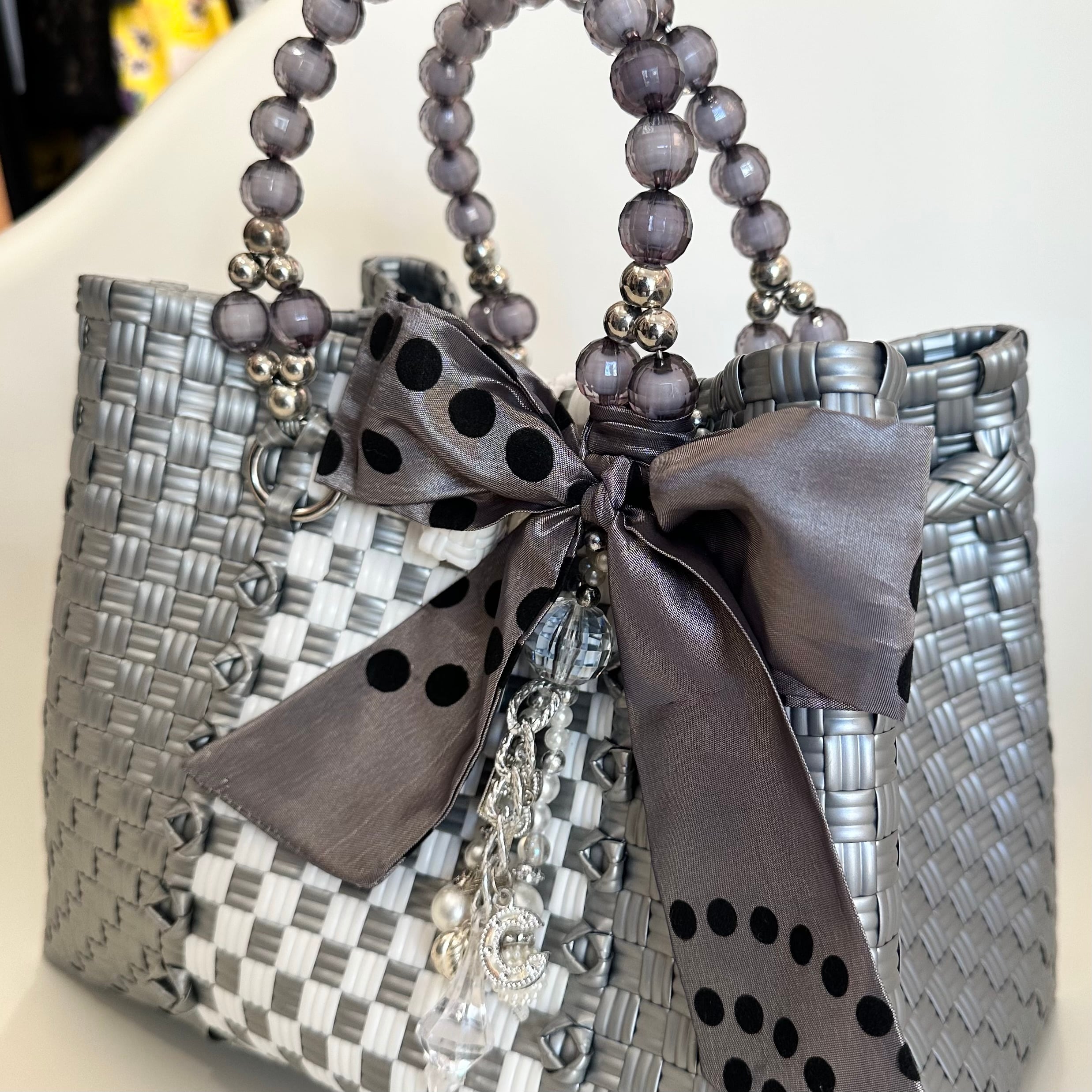 洗練されたシルバーとホワイトのコンビネーションが魅力のバリニーズバッグ・エレガンスシリーズは、日常のスタイルに上品さを添える素敵なアイテムです!